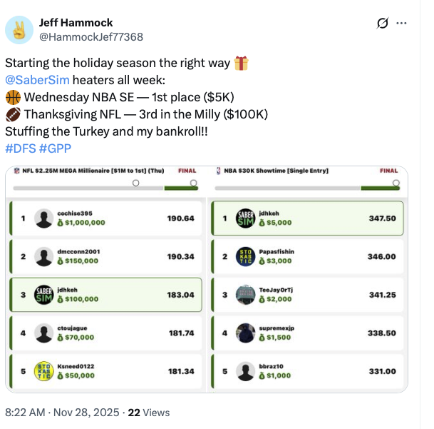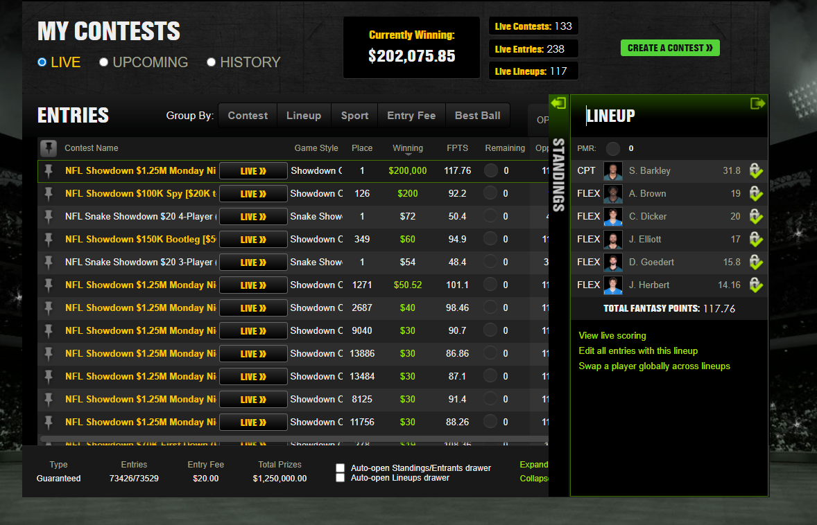 “After winning other contests and knowing that the lineups I’m building are scoring high enough to take down a big one, I took a shot and entered them and they worked out well.”